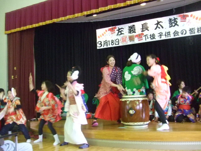 デイホールで、勝山市下後地区子供会をお迎えして勝山左義長太鼓を
