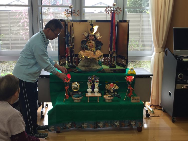 ケアハウス九頭竜のホールには立派な五月人形がお目見えしました。