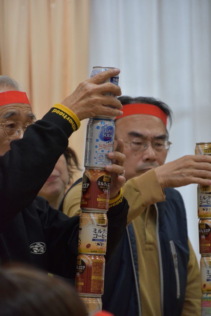 第四競技は、空き缶を時間内にどこまで積めるかの、積み上げリレーです。