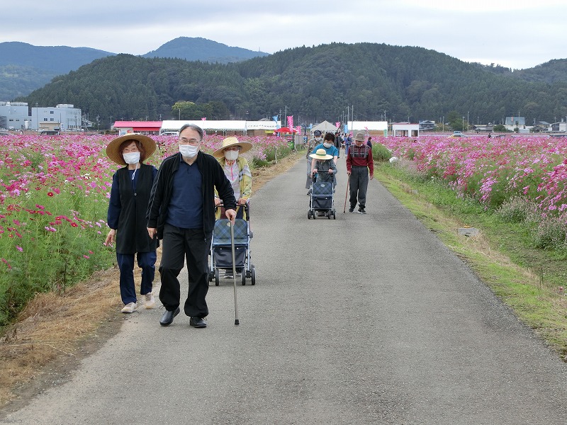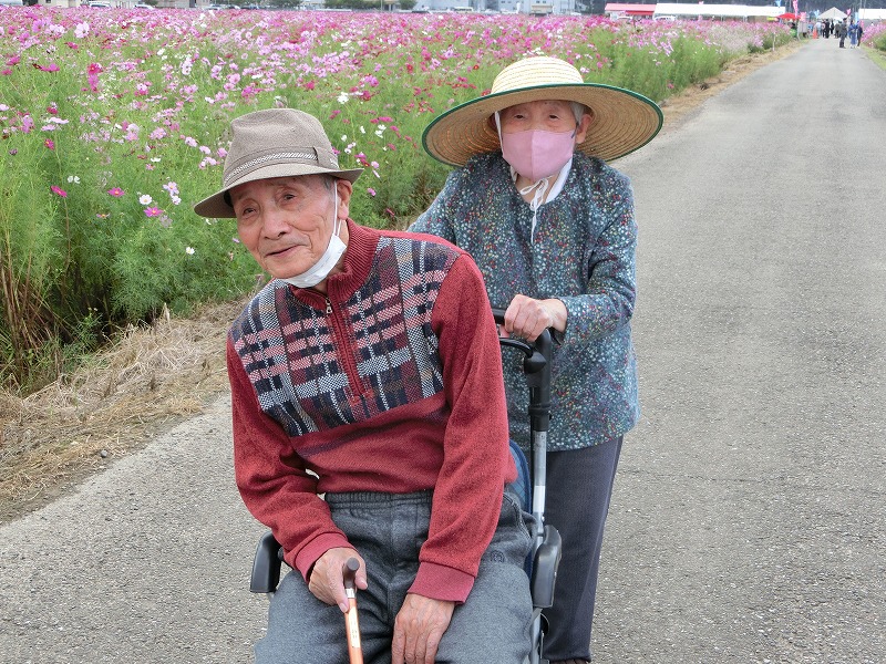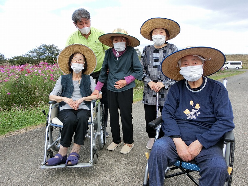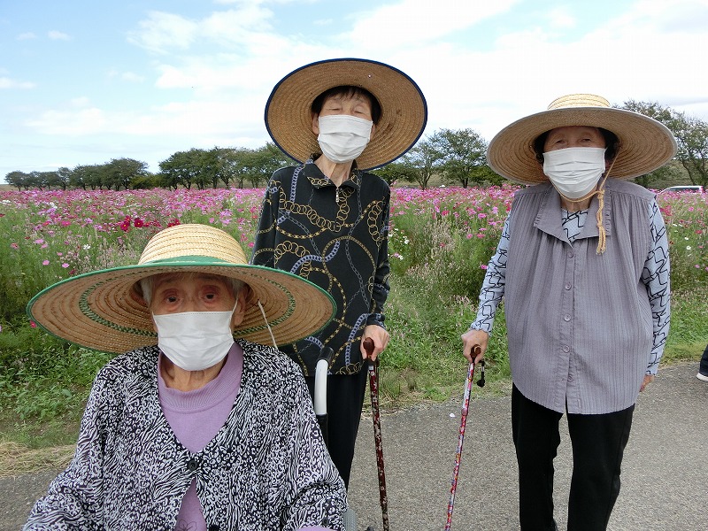色とりどりのコスモスを見てみなさんがニコニコ笑っていました😊