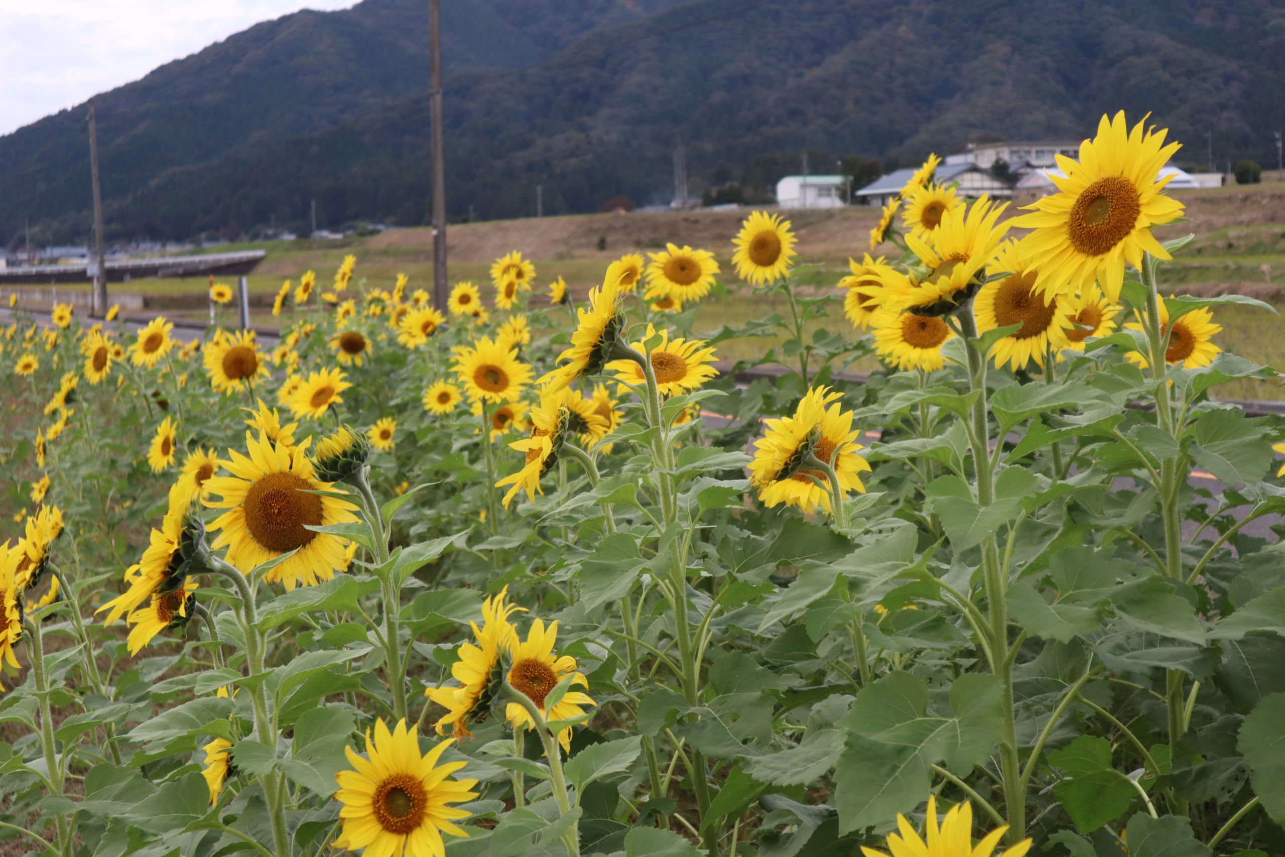 この季節には珍しい 夏の花ひまわり🌻。 この周辺を明るく照らしている景色は