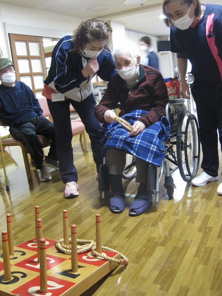 職員がサポートしながら、みなさん上手に輪投げを成功させていきます!🙆♂️