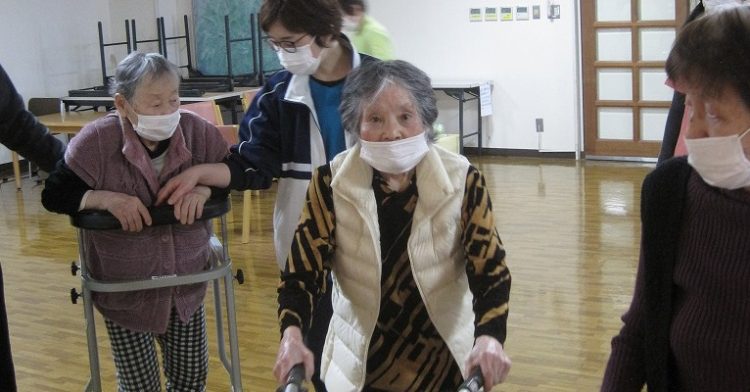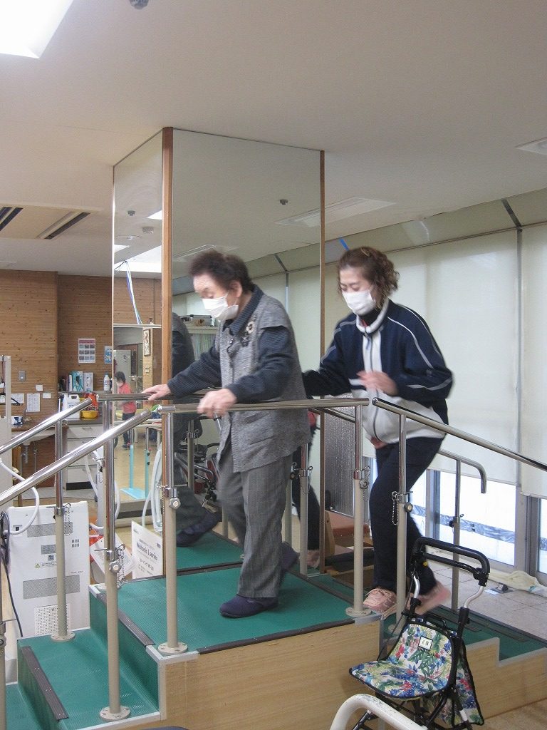 長生苑1階の長い廊下やリハビリ室を使って、下肢筋力を鍛えながら、